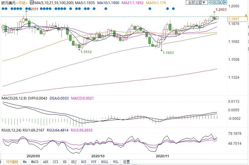 元大期货提醒,近期疫苗方面再次传来好消息,欧盟和英国暗示仍在努力达成协议,叠加近期公布的欧元区经济数据良好,欧元因此持续上涨,11月30日一度刷新12周高位1.2003。但是,考虑到IMF警告第二波疫情阻碍欧元区经济复苏,给未来经济前景蒙上阴影,暗示欧元的上涨空间仍受到限制。