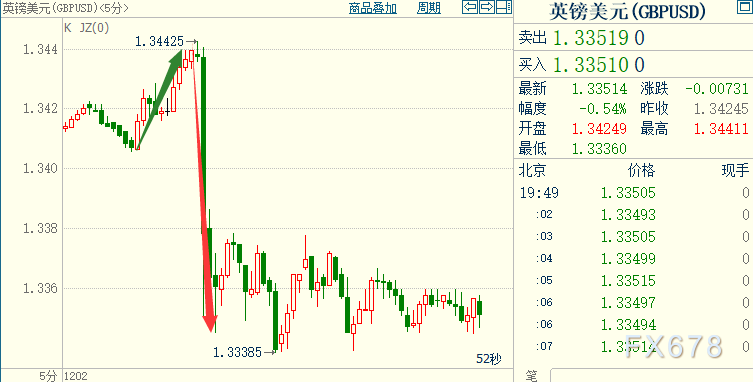 消息一出,英镑兑美元一度震荡上扬逾35点至9月1日以来新高1.3441。但好景不长,市场风向骤变,英镑兑美元汇率随后急挫近100点,美指随之转升。