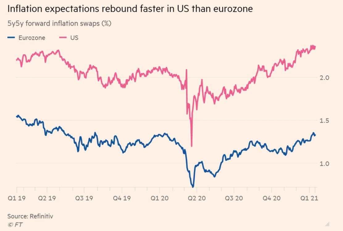 这意味着,欧盟的实际收益率(经预期通胀调整后的长期利率)在疫情期间并未像美国那样大幅下降,使欧元资产对投资者更具吸引力,从而提振了欧元。