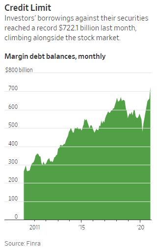 标普500指数自3月份新冠疫情暴发初期触底以来已上涨66%,特斯拉等数十只个股的涨幅甚至更高。而眼看着这场美股“造富”奇迹愈演愈烈,一些投资者禁不住诱惑试图追逐更高的收益,他们涉足一些风险较高的操作,比如集中持仓以及买卖期权和杠杆化交易所交易基金(ETF),不惜甘冒可能面临惨重损失的风险。其他一些人为买入更多股票,以自己的投资组合作抵押借入资金,将融资余额推高至两年多来的首个纪录水平。