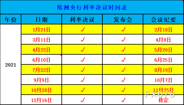 以下为欧洲央行利率决议、行长新闻发布会以及会议纪要的发布规则: