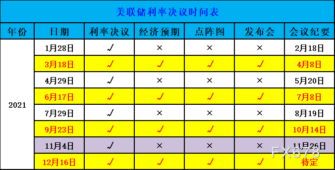 2、每个季度最后一个月随利率决议一起公布经济预期和点阵图。