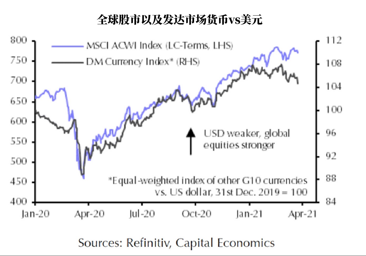 与此同时,凯投宏观(Capital Economics)市场经济学家奥利弗·艾伦(Oliver Allen)在一份报告中表示,美元与全球股市和其他发达市场货币的关系已经发生了变化。