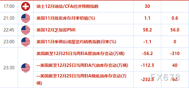 周三(12月30日)欧市盘前,美元指数小幅下跌,一度刷新逾两年半新低,参议院推迟表决纾困支票的消息并没能提振美元。欧元兑美元小幅上涨,刷新逾两年半新高。现货黄金和美油均录得小幅上涨,API原油库存的大幅减少继续给油价提供支撑。