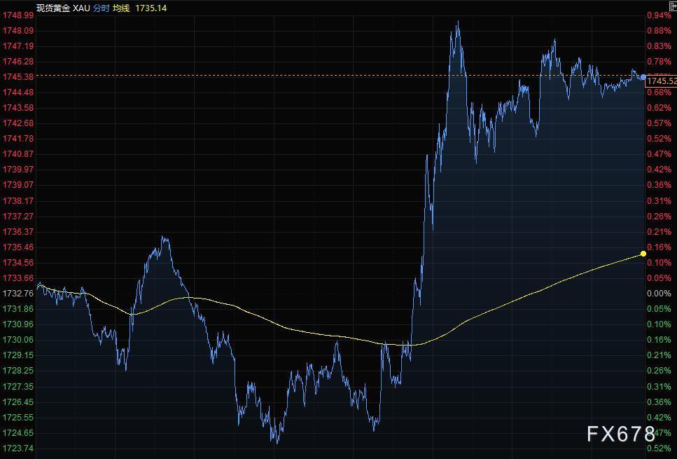 金价三个交易日以来首次上涨,现货黄金稍早一度触及1748.99美元/盎司,较日低回升逾25美元,因为美国通货膨胀率创接近九年来最大增幅之后,美元走弱;美国卫生官员因安全担忧而建议暂停使用强生疫苗的消息也支撑了黄金价格。