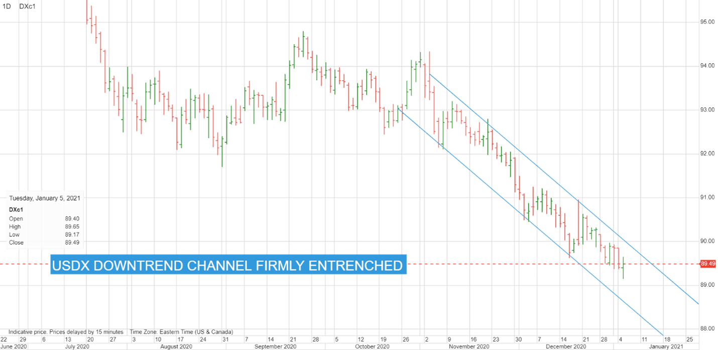 佐治亚州参议院的决选是隔夜市场的焦点。民主党赢得了一个席位,在另一个席位上以微弱优势领先的消息,使美元贬值。纽约外汇市场就是这样在美国东部时间早上6点开盘的。