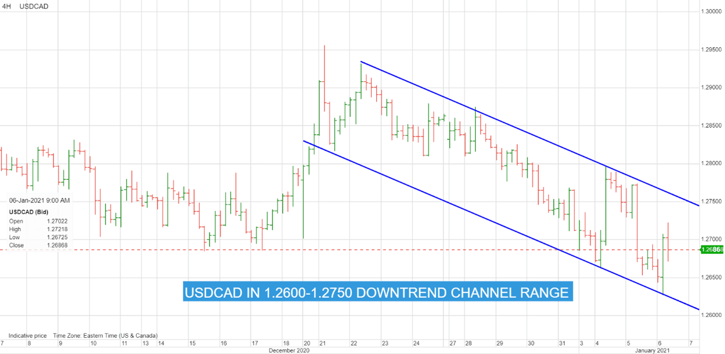(美元/加元4小时走势图,来源:盛宝银行)