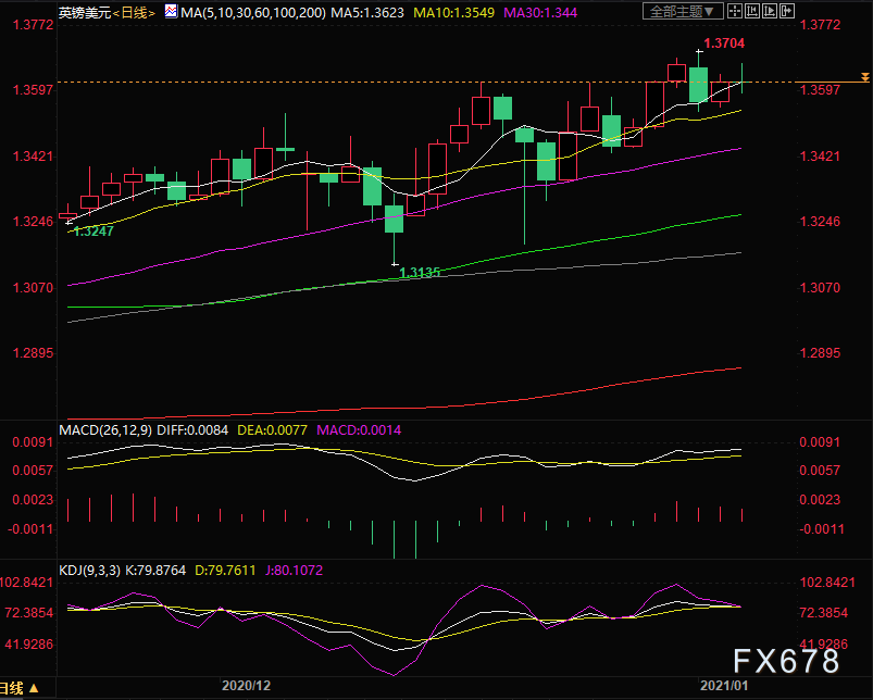 欧洲时段,英镑兑美元小幅下跌,现报1.3616,跌幅0.08%,疫情卷土重来和随之而来的经济限制对英镑构成了压力。贝伦贝格银行(Berenberg Bank)高级经济学家Kallum Pickering:由于英国实行了新的封锁,英镑短期前景看起来比以前糟糕得多。大华银行技术分析表示,未来几周英镑兑美元料交投于1.3460-1.3710区间,上日对汇价走低的预期是不正确的,隔夜它反弹到高点1.3641,反弹似乎有可能延续,但乏力的势头暗示不大可能上攻1.3710阻力位1.3710,因1.3660已经是相当强劲的阻力位,下行方面,初步支撑位位于1.3590,此后为1.3560。