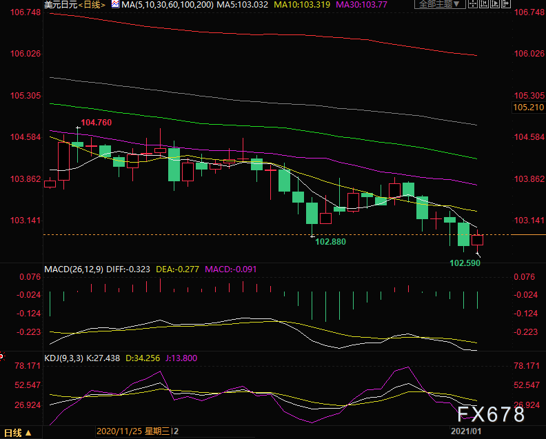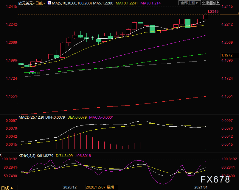 欧洲时段,美元指数小幅下跌,创2018年3月以来新低,现报89.32,跌幅0.17%,在佐治亚州竞争激烈的参议员选举中,民主党已经拿下一席,第二席的选票也已经领先,越来越接近拿下参议院控制权,当总统当选人拜登本月上任时,这将有利于他推行各种政策目标。但投票与计票过程仍充满争议,而美国当地时间周三即将对去年总统选举结果进行认证的仪式也因此面临着不确定性,现任总统特朗普及其支持者仍不放弃最后一博,此状况令市场投资者更进一步选择抛售美元计价资产离场观望,因而美元汇价跌势仍在继续。法国巴黎银行驻香港的多资产量化解决方案负责人Paul Sandhu表示,“民主党领导的政府预计会推出更多刺激措施以帮助缓解病毒危机...这意味着美元将会走软。” Sandhu表示,经济受到提振,也会让投资者更从容地面对风险,并可能寻求美国以外的资产,尤其是新兴市场资产。