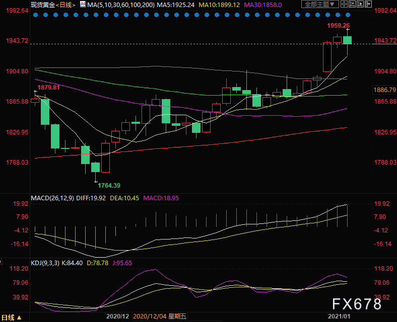 欧洲时段,现货黄金短线大跌,现报1938.43美元/盎司,跌幅0.6%,有数据显示,COMEX最活跃黄金期货合约在北京时间1月6日20:43-20:44两分钟内买卖盘面瞬间成交8153手,交易合约总价值逾15.7亿美元。荷兰药物管理局发布的预期显示,预计Moderna疫苗对英国毒株有效。此外荷兰药品管理局还指出,欧盟委员会预计周三晚些时候批准MODERNA疫苗。NBC新闻称两场角逐中的一场有利于民主党挑战者拉斐尔·沃诺克。在第二轮竞选中,民主党对手乔恩·奥斯索夫以微弱优势领先于现任共和党参议员戴维·珀杜。最终结果预计要到周三晚些时候才会公布,不过最新消息表明参议院将由民主党控制。针对金价后市展望,分析师Peter Krauth表示,目前的金价仍然是偏低的。全球大举宽松,地缘政治风险依旧外加全球高企的债务都意味着黄金会获得支撑。“在这种情况下,到年底回头看的时候,1940美元/盎司的金价将显得极为便宜。”