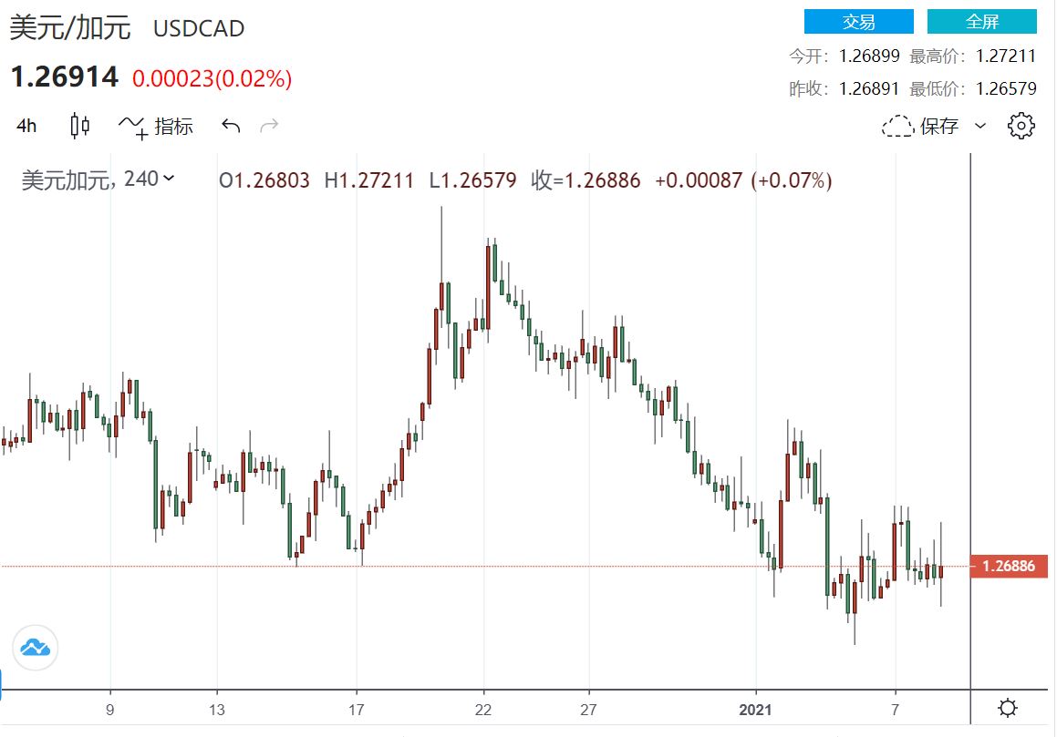 (美元/加元4小时走势图,来源:FX168)