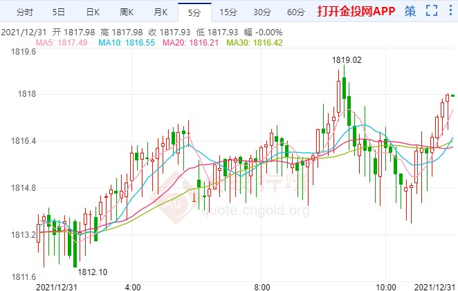 周五(12月31日)亚洲时段,国际黄金暂维持升势,目前企稳1815美元上方,值得注意的是,今天是2021年最后一个交易日,本周周一上涨,周二下跌,周三震荡,周四上涨,周五可能在年尾盘扫盘,市场交投清淡可能造成价格波动放大。