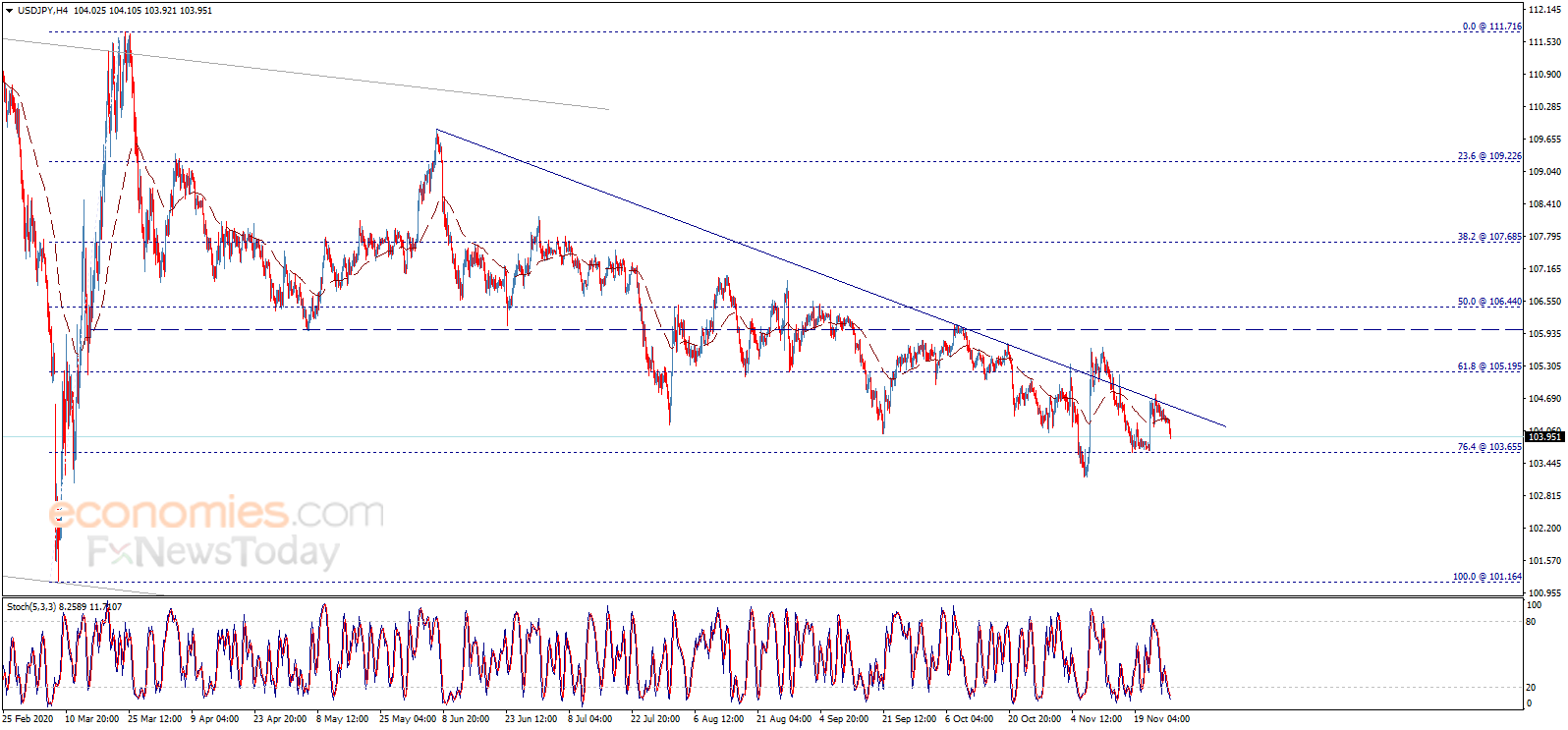 美元/日元开始今日交易后呈明显的看空倾向,并接近我们首个等待的目标103.65。我们预计美元/日元将延续跌势并失守上述水平,从而为该汇价跌向下一看空目标103.00打开道路。