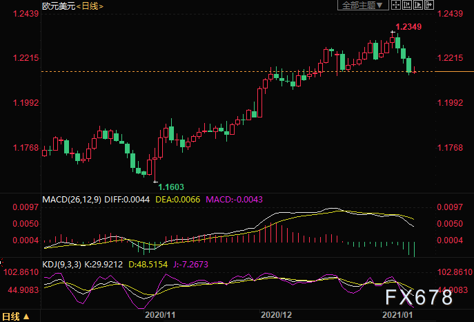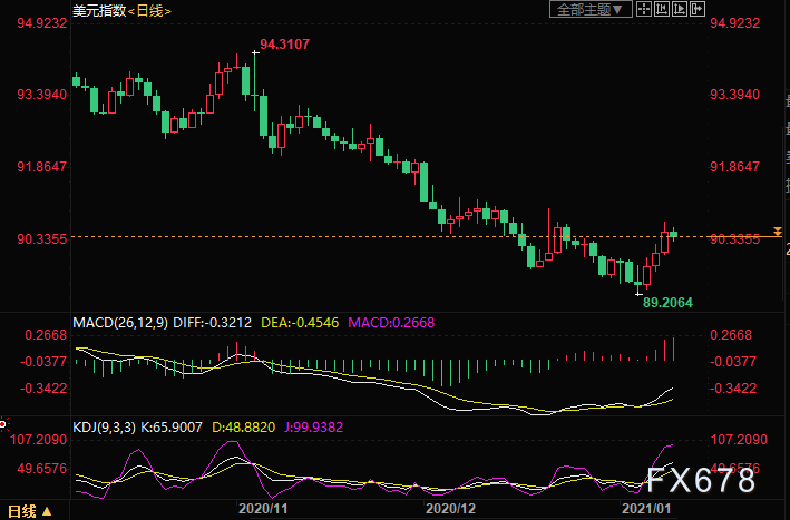 欧洲时段,美元指数小幅下跌,现报90.45,跌幅0.1%,因投资者在消化了之前美国财政政策趋于明朗化的消息之后,开始重新审慎地关注经济走向前景,而当前疫情仍然汹涌的局面也让大家重新相信,美联储至少在可预见的短时间内还不会关紧货币政策放水的闸门,这意味着美元指数后市仍然会面临一定压力,这也暂时遏制了其进一步反弹的步伐。市场正密切关注此后本周四美联储主席鲍威尔的讲话,其措辞将奠定之后在新总统任期内美联储货币政策与财政政策相配合的基调,在此之前,汇市料仍以谨慎观望情绪为主。