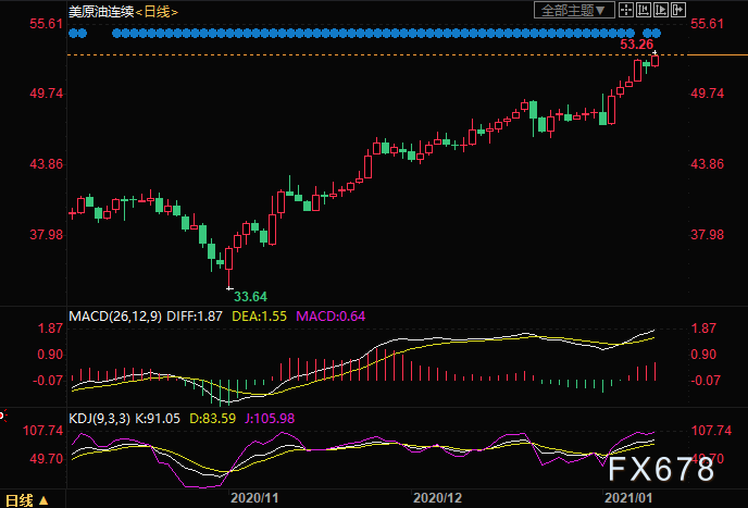 欧洲时段,美油升创11个月新高,现报53.15美元/桶,涨幅1.72%,因市场投资者在之前沙特逆势减产后进一步押注全球能源需要在经济复苏背景下增加,而产能恢复速度滞后的状况,将令油市出现供给缺口,而日内美元指数回落的状况也强化了美元计价大宗商品价格的升势,推动油价进一步走强。短线NYMEX原油价格将进一步上看去年2月的高点54.66美元,但对于之后的进一步走势业内机构仍有分歧。高盛预计今年上半年原油价格将在需求增长而产能跟进不及的背景下进一步冲高,但是其他一些机构却给出了相反的看法,认为疫苗对经济的拉动影响要在年内晚些时候才能显现,而在此之前,OPEC+按月增产的步伐将使得油市再度面临承压。