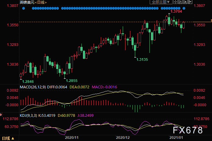 欧洲时段,英镑兑美元走高,现报1.3597,涨幅0.58%,一方面汇价受到日内美元指数回落的助推,另一方面,英国央行行长贝利日内的讲话也打消了投资者的顾虑,令英镑走势前景被进一步看好。贝利在讲话中指出,负利率政策是充满争议的非常规性货币政策措施,因此在非到万不得已时无需轻易动用之,他同时表示,疫情并不会令英国经济彻底地伤筋动骨,而当前防疫管控措施的影响程度也远不及2020年春季时的状况,这令市场对英国央行进一步强化宽松的预期进一步消退。在此状况下,英镑兑美元汇价在收复10日均线切入位1.3585之后初步呈现了短线指止跌的迹象,而只要汇价不失守1.3475处的30日均线,去年9月份以来的这波上行趋势就仍然完好。