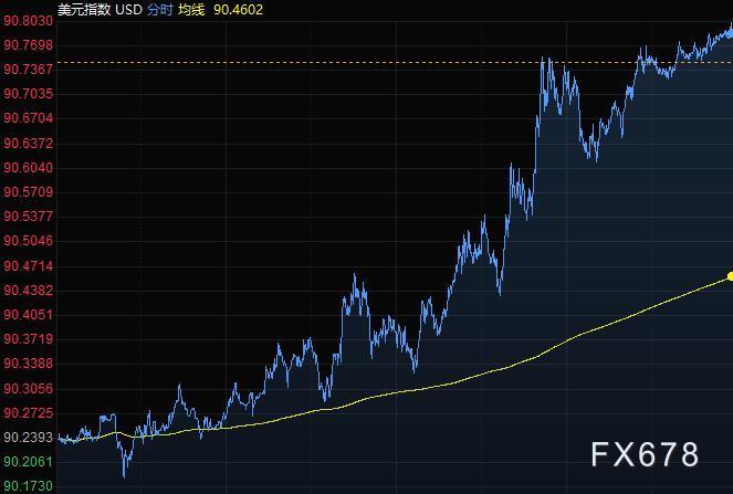 美元指数升0.60%,报90.79,盘中触及90.80,为去年12月21日以来最高,周线收高0.8%,创11周来最佳单周表现。数据显示新冠疫情对经济持续造成影响,新增感染病例不断增加也抑制了风险偏好,这提振了对美元的避险需求。