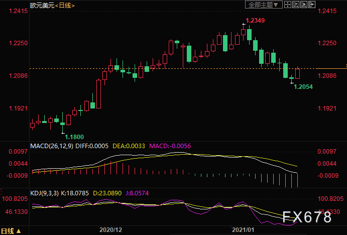 欧洲时段,欧元兑美元走高,现报1.2131,涨幅0.45%,因此前德国及欧元区整体ZEW经济景气指数大幅向好,缓解了投资对于近期以来新一轮防疫封锁措施对经济造成冲击的顾虑,这同时也推动来投资者进一步抛售避险美元,而美元同时还受到美国残存的政治不确定性风险,以及未来财政货币政策双宽松前景的打压,这也令以欧元为首的非美货币进一步走强。而欧元兑美元在收复了关键的趋势阻力位1.2130之后,下一反弹目标将上看10日均线切入位暨上周五日内高点1.2178,这将为短线行情筑底奠定基础。市场仍在关心日内稍后美国候任财长、前美联储主席耶伦的证词讲话,以及此后周四的欧洲央行的政策决议,这之中透露出的美欧政策落差将成为决定汇价下一步走势的关键。