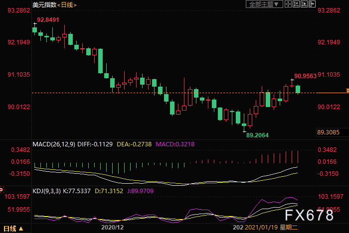 ① 美元指数在周二日内录得回落,在欧市开盘之际跌幅加剧。东京三菱日联银行指出,一方面,全球投资者对疫苗应用前景继续乐观拉动了非美高风险货币走强,令避险美元遭到抛售,另一方面,投资者对美国未来政策前景予以进一步解读之后也认为,美元货币供应量在未来进一步增加的前景仍是大势所趋;