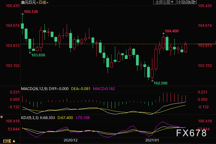 欧洲时段,美元兑日元走高,现报103.98,涨幅0.28%,因美国假日结束之际,全球热钱的配置方向再度出现变动,资金从亚太市场回流北美市场。一方面,美国新任财长、美联储前主席耶伦的言辞令市场对美元汇价走势信心进一步大增,另一方面,市场仍然担心日本本土的疫情,尤其是东京奥运会能否在允许观众入场的背景下正常如期举办,这也成了近期拖累日元汇价的主要因素。与此同时,全球风险情绪在欧洲等地疫情有所缓和背景下的回暖也推动美股股指期货走强,令避险日元额外承压。不过,美元兑日元汇价在投资者于美国周三政权交接前仍然在104关口上面面临一定阻力,因市场谨慎情绪犹存,而分析师此前则预计,根据历史模型美元指数会在新总统就职后一个月内续涨,这有望推动美元兑日元进一步升回105心理关口。