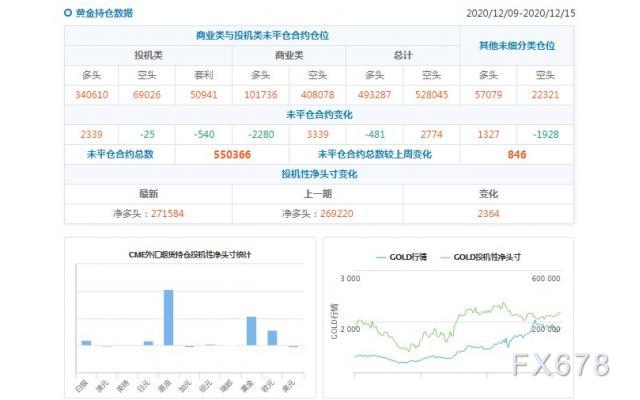 元大期货CTFC持仓数据:美国商品期货交易委员会(CFTC)周五(12月18日)发布的报告显示,截止至12月9日至12月15日当周:欧元看多意愿降温;黄金看多意愿升温,黄金投机性净多头增加2364手合约,至271584手合约,表明投资者看多黄金的意愿升温。