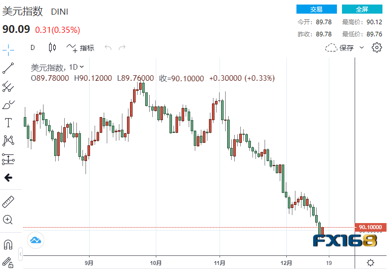 美元指数周五有所回升,最新上涨0.3%,略高于90关口,但本周仍将下跌1%。该指数周四触及两年多来的最低水平89.723。