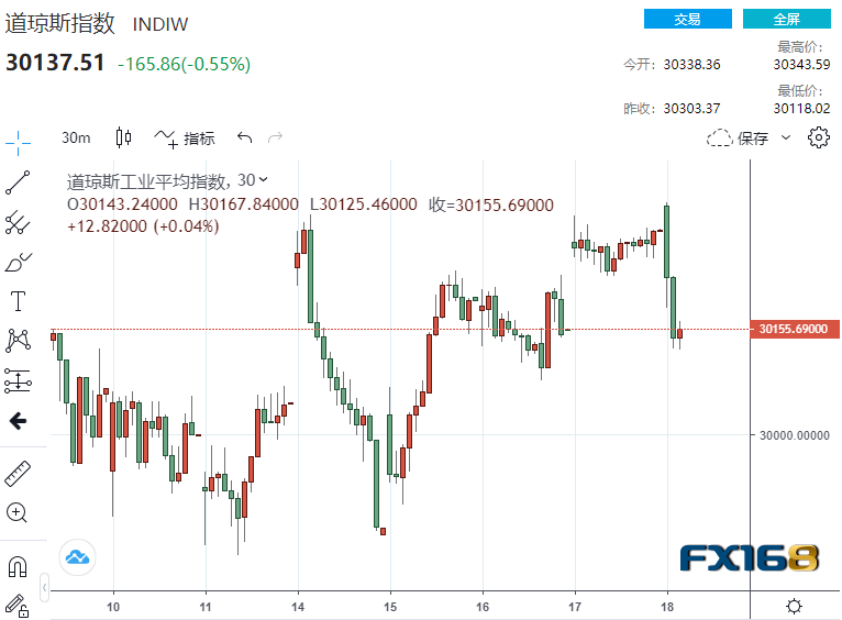 (道指30分钟走势图,来源:FX168)