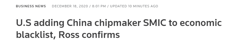 今天稍早前,路透社曾报道,有知情人士透露,美国将在周五将数十家中国企业列入贸易黑名单,其中包括中国最大的芯片制造商中芯国际(SMIC)。路透社指出,这一此前从未被报道过的举动,被视为美国总统特朗普巩固其对华强硬政策遗产的最新努力。