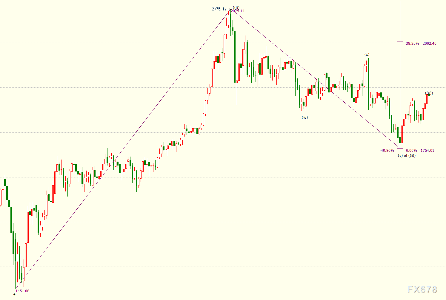 日线图上看,金价自1764美元开启上行((iii))浪走势,(i)浪是((iii))浪的子浪。((iii))浪则是自1451美元开启的上行5浪的子浪,((iii))浪的23.6%目标位在1911美元。