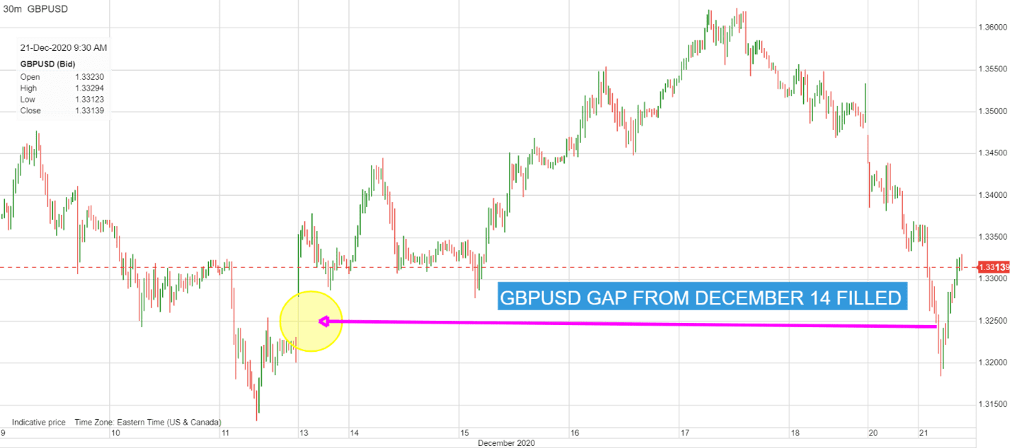 你可能还记得12月16日,我们写道:“从周一的4小时图表来看,英镑/美元在1.3230 - 1.3270之间存在巨大差距。缺口几乎总能被填满。“这正是在隔夜市场发生的事情。