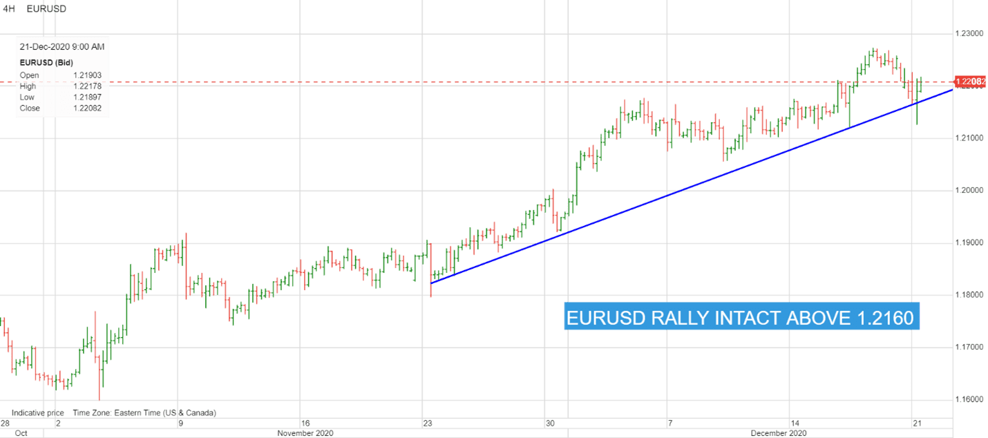 美元在隔夜市场需求旺盛。这是一个重要时间。欧盟和英国贸易谈判的失败、新冠病毒的变异,以及美国政客最终同意新的疫情救助法案的消息,搅乱了市场,圣诞假日导致市场清淡。