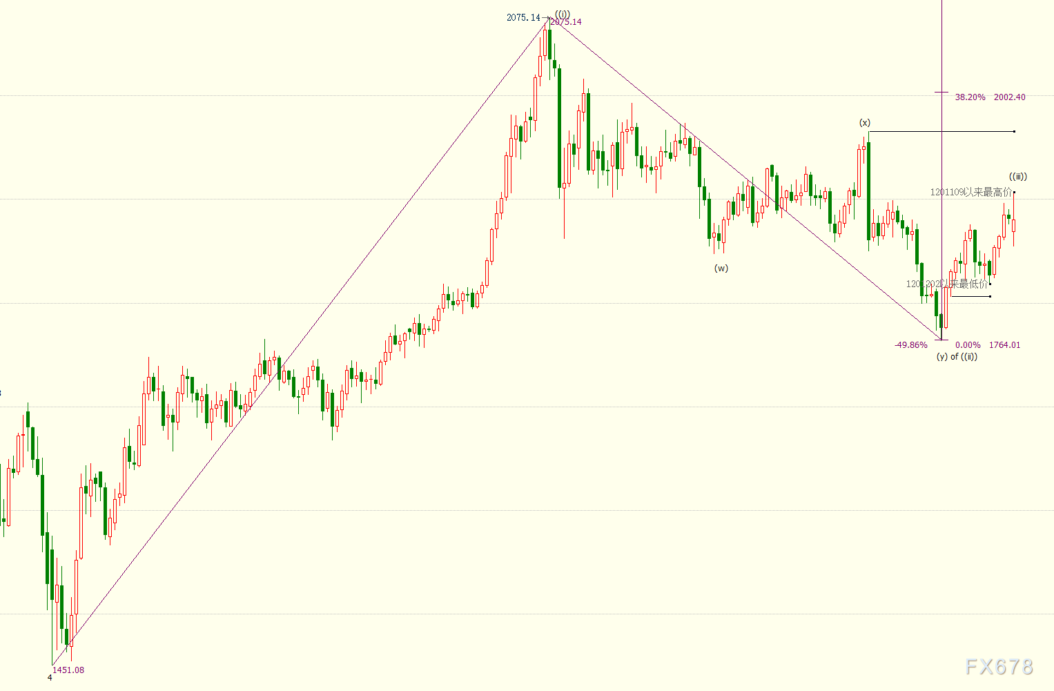 日线图上看,金价自1764美元开启上行((iii))浪走势,(i)浪是((iii))浪的子浪。((iii))浪的23.6%和38.2%目标位分别在1911美元和2002美元,((iii))浪是自1451美元开启的上行5浪的子浪。