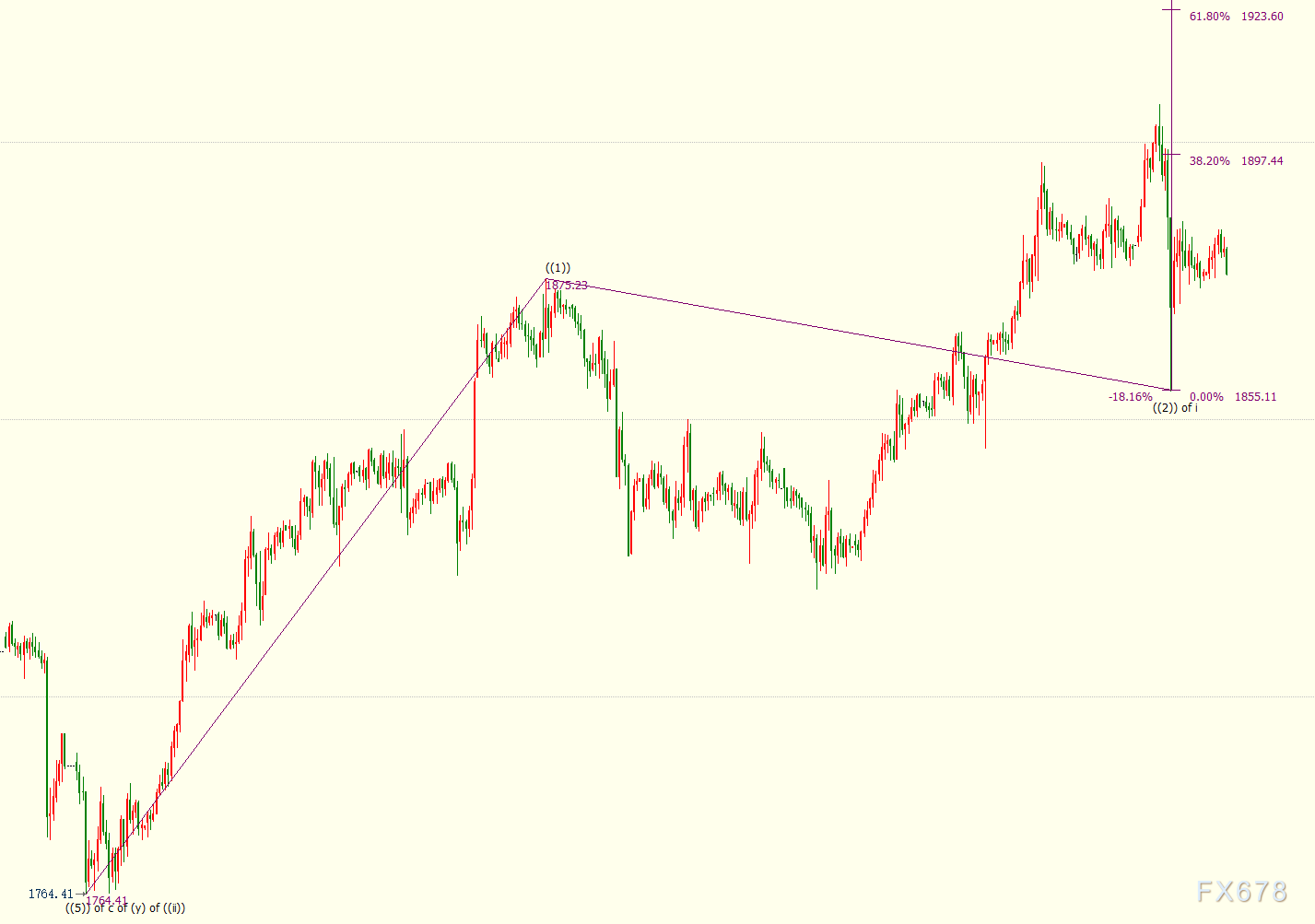 日线图上看,金价自1764美元开启上行((iii))浪走势,(i)浪是((iii))浪的子浪。((iii))浪的23.6%和38.2%目标位分别在1911美元和2002美元,((iii))浪是自1451美元开启的上行5浪的子浪。