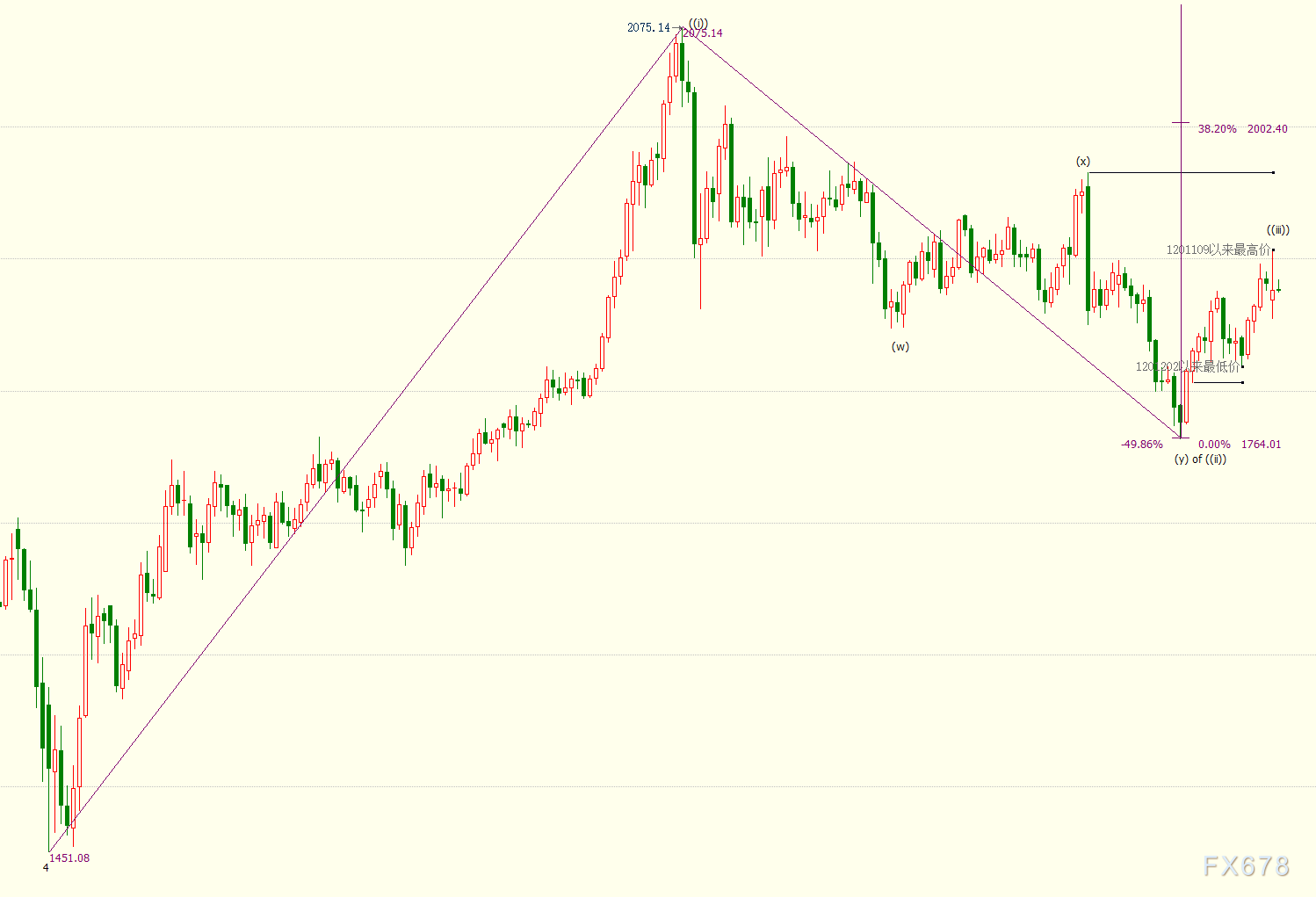 日线图上看,金价自1764美元开启上行((iii))浪走势,(i)浪是((iii))浪的子浪。((iii))浪的23.6%和38.2%目标位分别在1911美元和2002美元,((iii))浪是自1451美元开启的上行5浪的子浪。