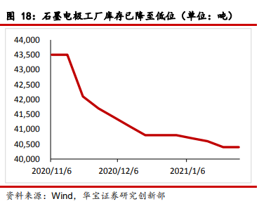 石墨电极的主要下游应用为电弧炉炼钢制造,约占到消费总量的50%。华宝证券研报预计,随着国内碳中和政策下电炉冶炼增长,2021年石墨电极市场有望迎来逆转,石墨电极在上半年仍会有上涨空间,下半年价格将保持平稳。