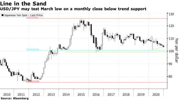 对此,彭博外汇策略师Michael G. Wilson在本周一就罗列了多张图表,尝试剖析主要货币当前技术面格局。在经过艰难的一年后,美元临近年底看来仍面临进一步续跌的风险,因为长期技术趋势揭示了可能导致美元兑主要货币进一步下跌的触发点。