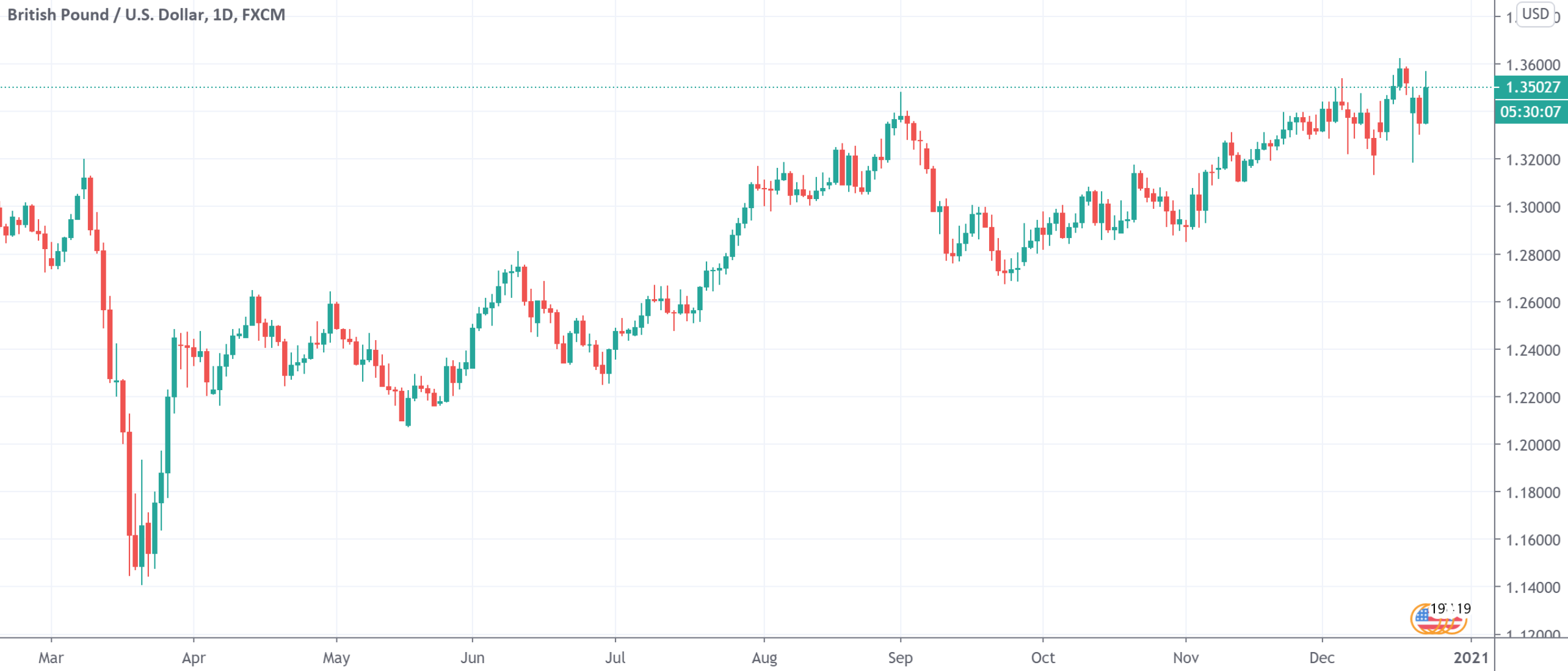 受到贸易谈判乐观情绪影响,截至发稿周三英镑/美元大涨逾150点(1.13%)报1.3502,目前正处于2018年5月后的高点。