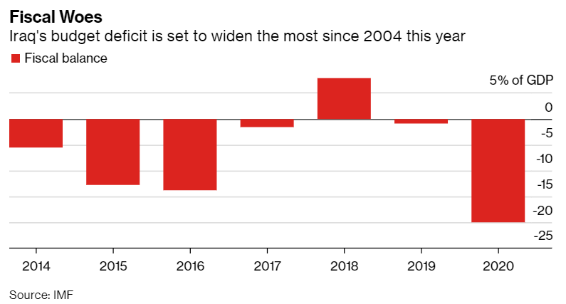 据彭博社报道,为了应对低油价和疫情导致的经济危机,伊拉克央行上周末决定将本国货币第纳尔大幅贬值。如果不大幅削减开支,这将不足以防止更严重的经济痛苦。