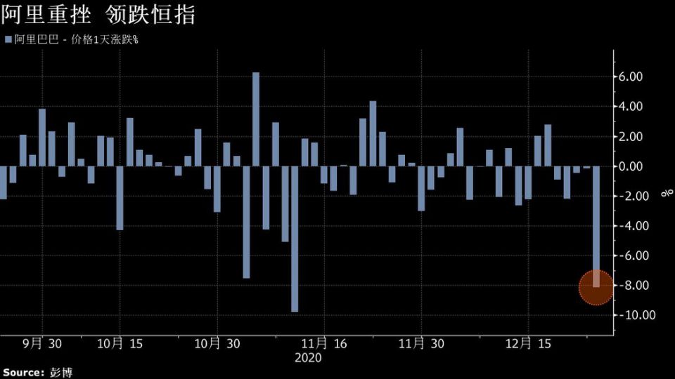 因涉嫌垄断行为遭市场监管总局立案调查,阿里巴巴港股股价周四重挫8.1%,在恒指成份股中表现最差,股价创下逾5个月新低228.20港元;其电商领域竞争对手京东集团跌2.3%,其他科网股如腾讯控股跌2.6%,美团跌2.7%,阿里健康和京东健康均跌10%以上。光银国际投资研究部主管林樵基表示,阿里传出利空后,部分投资者可能选择在圣诞节前获利回吐;阿里巴巴未来两三个月内仍有调整空间,因其短期内仍面临政策风险。