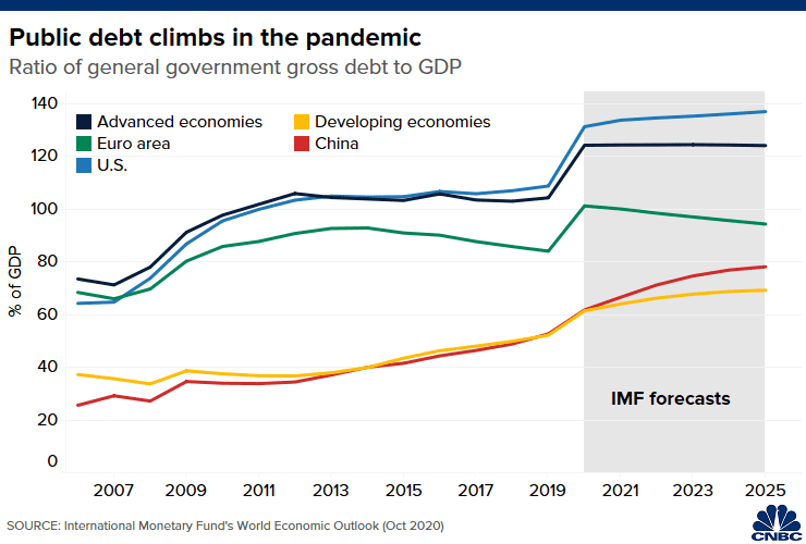 IMF称,如此惊人的支出水平已将全球公共债务推至历史最高水平,但各国政府不应过早撤回财政支持。