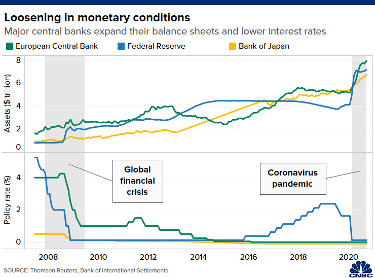 包括美联储和欧洲央行在内的发达经济体的中央银行也增加了资产购买量,以向金融体系注入更多资金。越来越多新兴市场国家的央行也采取了这一举措,它们正在探讨如何支持各自遭受疫情重创的经济。