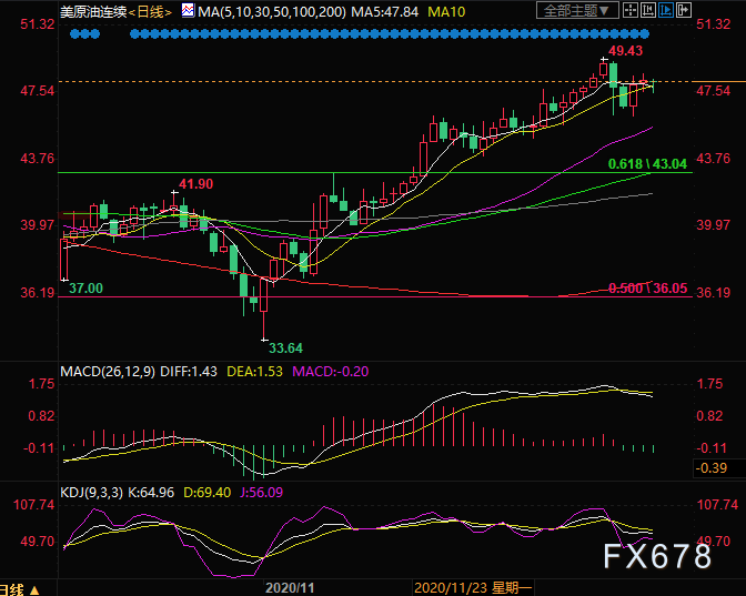 解析:亚洲时段由于全球严防死守新冠病毒的变异新毒株,出台入境限制措施,加剧了市场对原油的需求担忧,美油一度下跌逾1.5%至47.50美元/桶,不过美国总统特朗普在临近美国政府“停摆”前,签署了抗疫纾困法案,帮助油价收复了大部分跌幅。但是,由于刺激方案的规模仅为9000亿美元,而且出台的时机太晚,此前市场已经消化,预计短线支撑作用有限,投资者普遍关注1月4日的OPEC+会议,目前俄罗斯方面支持增产50万桶,预计将限制油价的上涨空间。