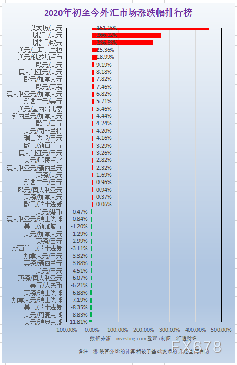 下图为2020年外汇市场涨跌排行一览(数据截止2020年12月29日):