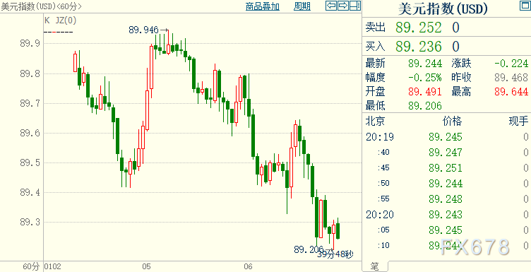 现货黄金刷新去年11月9日以来高位至1959.26美元/盎司,美元指数刷新2018年3月底以来低位至89.21。