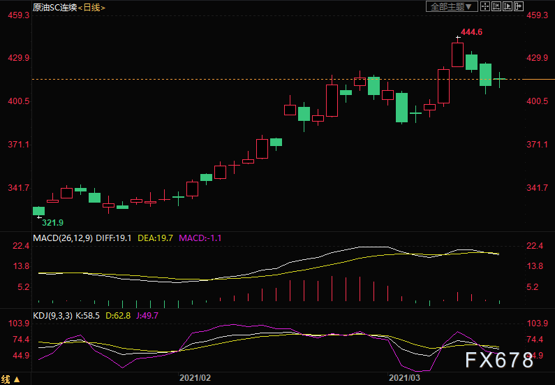 周四(3月11日)上海原油价格小幅下跌,主力合约2104终盘收于416.2元/桶,跌1.7元/桶,跌幅0.41%。尽管EIA原油库存暴增1379.80万桶,但EIA汽油库存大降抵销了原油库存大涨的不利影响。