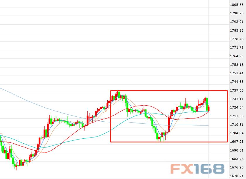 (现货黄金小时图,来源:FX168)