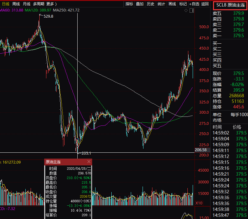 受到全球新冠疫情冲击,2020年头几个月,国际原油价格一度出现连续急跌,国内原油期货价格受此影响,也连续深幅调整。?