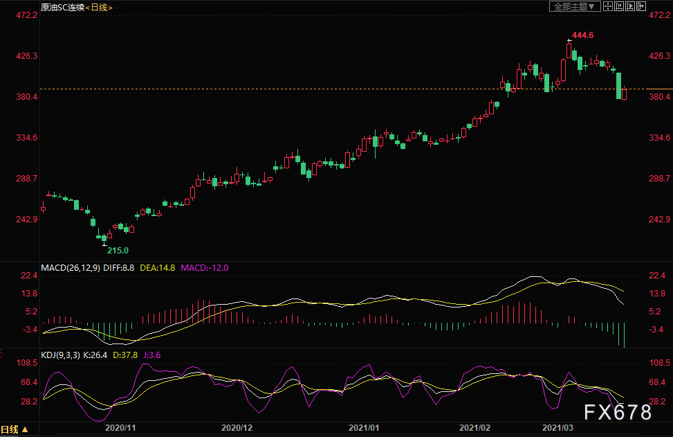 周一(3月22日)上海原油价格走低,主力合约2105终盘收于390.1元/桶,跌5.8元/桶,跌幅1.46%,因市场再度担忧欧洲的封锁措施可能拖累油市需求复苏的步伐。根据一份提议草案,德国防疫封锁势将持续进入第五个月,因感染率超过了当局所说的医院可负荷水平。